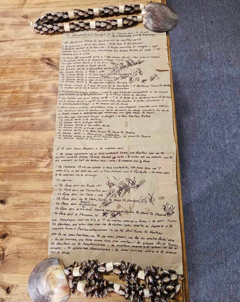 A letter from Arikinui Tā Tumu because he couldn't make the Unification hui in Taputapuātea.